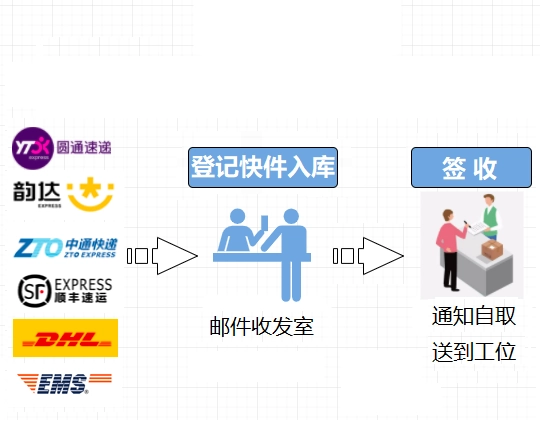 由专业的第三方物流公司或物业内部组织人力,通过整合优质的物流供应商,为入驻的企业客户提供一站式快递物流解决方案,提供代收、代发等个性化物流服务,并通过专业的系统进行高效管理。