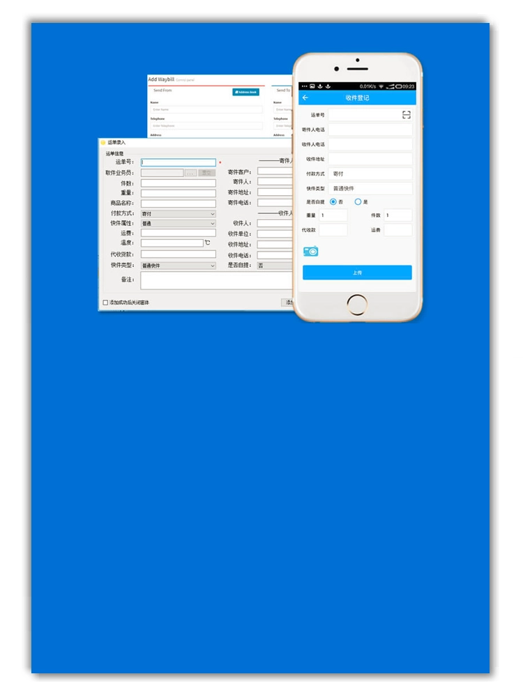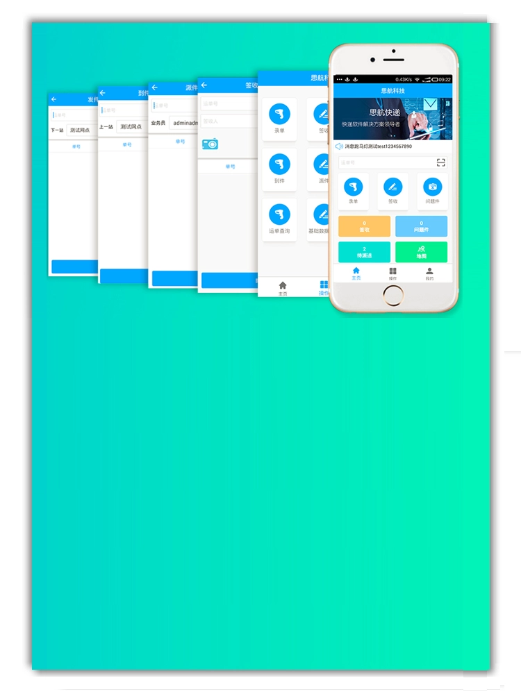 系统主要分为寄件及派件两个业务流程,包含【订单管理】【分拨中心操作】【财务管理】【客服管理】【监控查询】【移动端操作】【系统设置】【客服下单平台】等功能模块,支持快递公司API对接、短信邮件及微信自动推送、手写签名拍照、电子称对接、自制条码标签等特色应用。